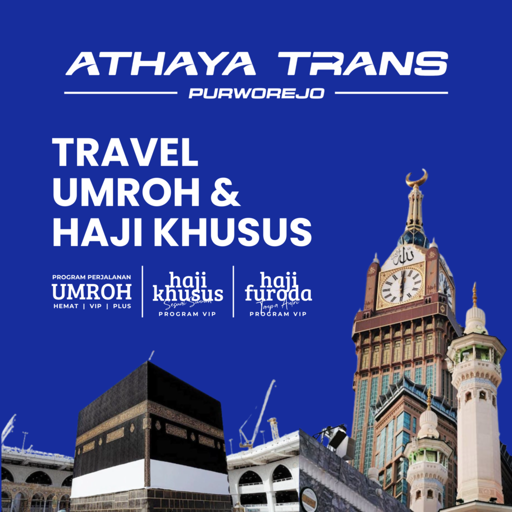 Athaya Trans Purworejo melayani Umroh & Haji Khusus, Shuttle tujuan seluruh wilayah Indonesia, Paket Express (Satu Malam Sampai), Paket Wisata serta Sewa Kendaraan (Minibus sampai Big Bus)